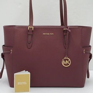 Michael Kors Gilly Large Drawstring Travel Tote Leather Oxblood Color