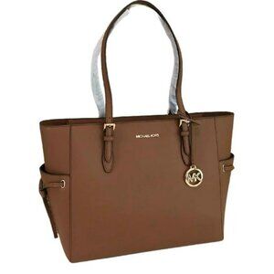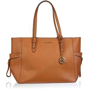 Michael Kors Gilly Large Drawstring Travel Tote Shoulder Leather Bag in Luggage