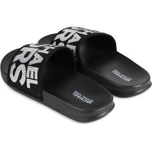 Michael Kors Gilmore Slide Sandals Black & White Crystals Womens NEW NO BOX