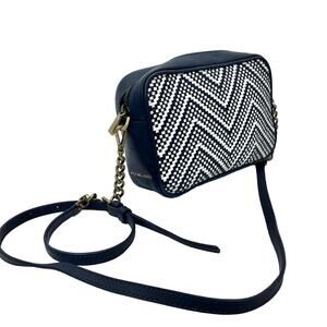 Michael Kors Ginny Woven Leather Camera Crossbody Bag Navy/White