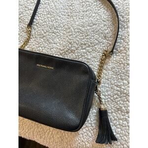 Michael Kors Ginny Medium Black Pebbled Leather Crossbody Camera Bag Purse