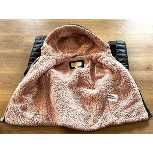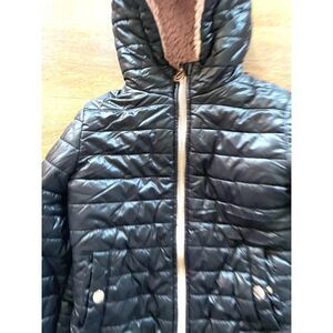 Michael Kors Girls Puffer Jacket With Hood/ Pink Faux Lined Black Girls Size 7/8
