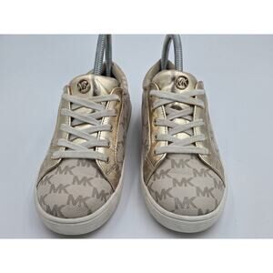 Michael Kors Girls Size 3 Jem Daley MK Monogram Gold Lace-Up Low Top Sneakers