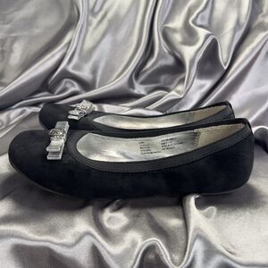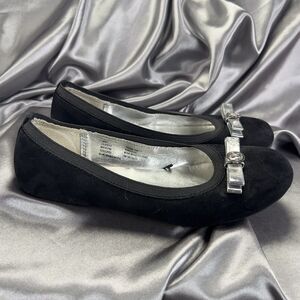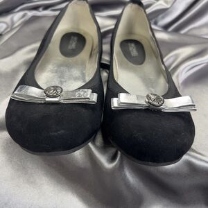 Michael Kors Gloria Flats Sz 5 Black Velvet Logo Bow Charm Back-to-School Shoes