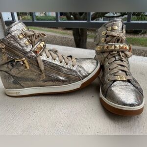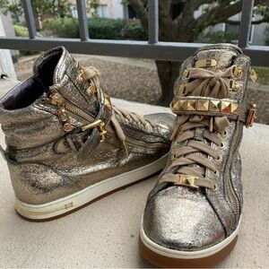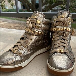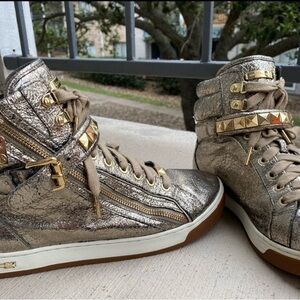 Michael Kors Gold High-Top Sneakers with Side Zipper