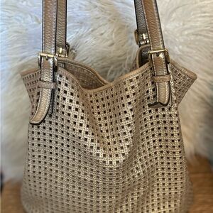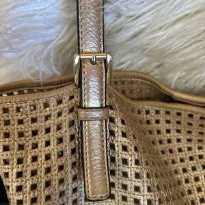 Michael Kors Gold Leather Perforated Large Tote Bag/Shoulder Bag/Beach Bag