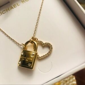Michael Kors Gold Lock And Heart Necklace NWT
