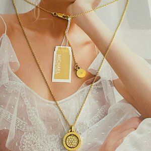 Michael Kors Gold Logo Charm Pendant Necklace