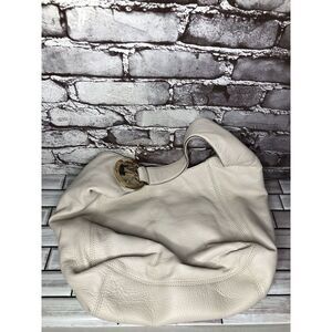 Selling Michael Kors Gold Logo Vanilla Ivory Large Leather Shoulder Bag Handbag Purse