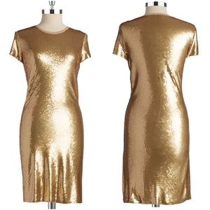 New With Tags. MFSR: $295.00. Michael Kors Gold Sequin Dress. SIZE: XS