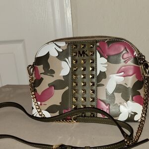 Michael Kors Gold Studded Floral Handbag all leather & gold Chain Strap.