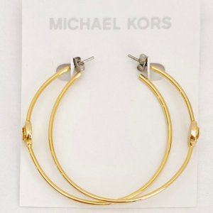 MICHAEL KORS Gold Tone/MK Logo Large Hoop Earrings