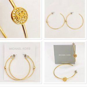 Michael Kors Gold Tone Logo Hoop Earrings NWT