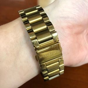 Gently worn gold tone watch. Very fashionable and just upgraded my watch so barely wore this one. Great condition and fashion oversized look perfect for pairing with bangles.