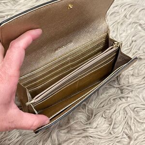 Michael Kors Gold Wallet. Very clean and good condition except a discoloration mark on the back.