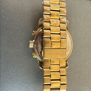 Elegant Michael Kors watch. Features a gold-tone bracelet. Stylish and timeless design.
