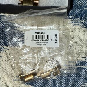 Stylish gold Michael Kors watch. Features a navy dial with Roman numerals and subdials.