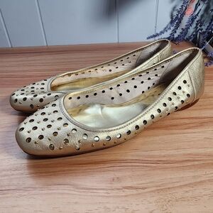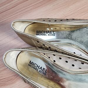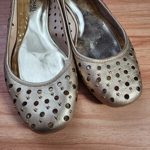 Step out in style with these elegant gold flats from Michael Kors. Perfect for any occasion, these shoes offer both comfort and sophistication.