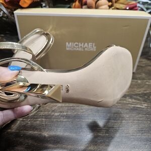 Step out in style with these elegant gold sandals from Michael Kors. Perfect for any occasion, these shoes offer both comfort and sophistication.