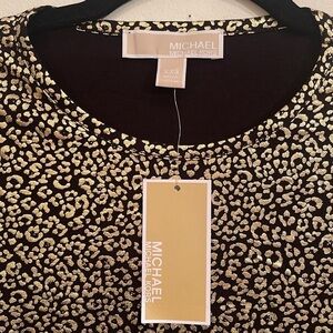 Michael Kors Gold and Black Shiny Tie Front Long Sleeve Blouse