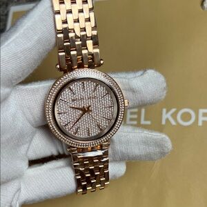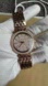 Stylish gold watch with a shimmering red face. Ideal for any occasion.
