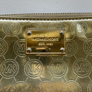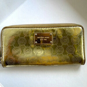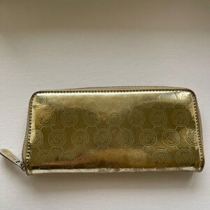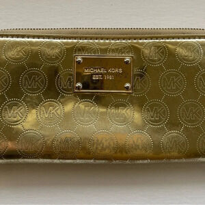 Michael Kors Gold metallic leather Jet Set Zip Around Wallet