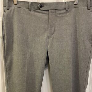 These Michael Kors dress pants in a versatile gray color offer a sleek, professional look with their flat front design and comfortable fit silhouette. Crafted from a smooth, structured fabric, they are perfect for business-casual settings and ensure a polished appearance.