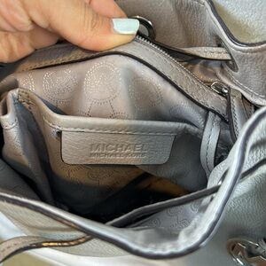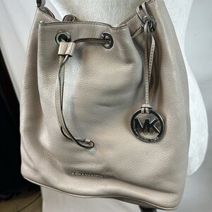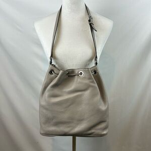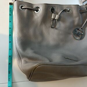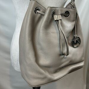 Michael Kors Gray Leather Bucket Bag Drawstring Shoulder Bag Purse