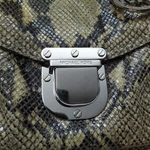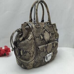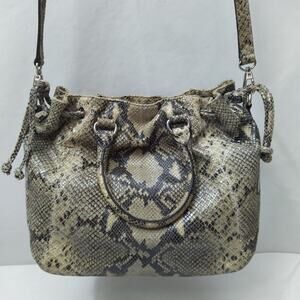 Michael Kors Gray Leather Python Embossed Pushlock Drawstring Satchel Bag