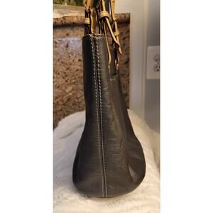 Michael Kors Gray Leather Satchel Handbag Purse Gold Hardware