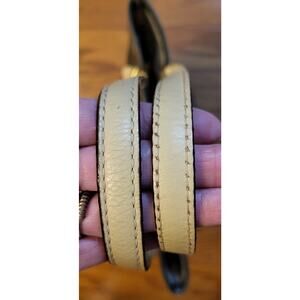 Good pre-owned condition purse. The bag does have some slight cracking on the bottom cord piece as shown in pictures. The bag does show some use but has plenty of life left in her. The interior has one spot on the bottom area of one side pocket as shown in pictures. Blemishes are shown in pictures. Please review all pictures prior to purchase.