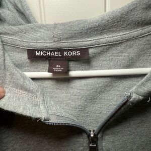 Stay stylish and comfortable with this Michael Kors gray men's sweater. Perfect for any casual outing. Size XL - missing pull string- 95% cotton 5% elastane