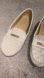 Elegant gray loafers with signature monogram pattern. Features a chic logo accent. Worn Only Once- excellent condition!