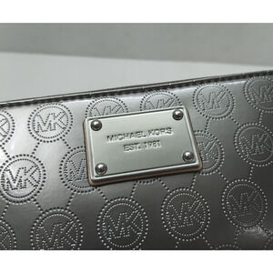 Michael Kors Gray Patent Leather Zip Around Credit Card Wallet