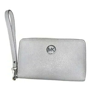 Michael Kors Gray Pebble Leather Zip Around Wristlet