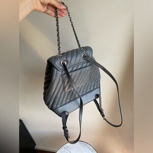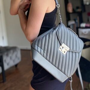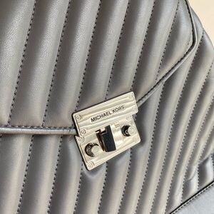 The Michael Kors Gray Backpack showcases a chic quilted pattern that exudes sophistication. Crafted with precision, this backpack features a sleek flap closure, offering both style and security. Its structured design ensures durability, making it an ideal choice for those seeking a blend of elegance and practicality.