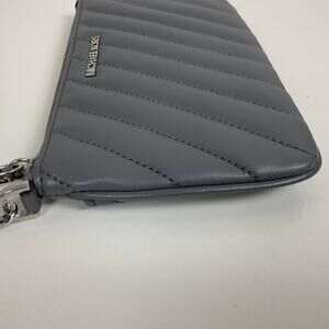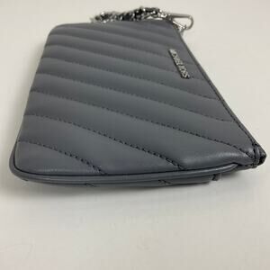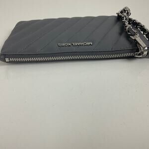 Michael Kors Gray Quilted Leather Wristlet Purse Top Zip Adjustable Chain Strap