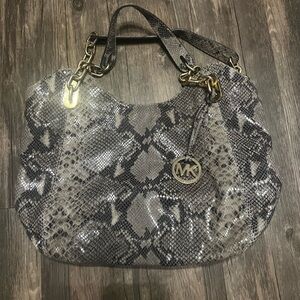 Elevate your style with this chic Michael Kors gray snake print bag. Perfect for any occasion, this bag combines elegance and functionality.