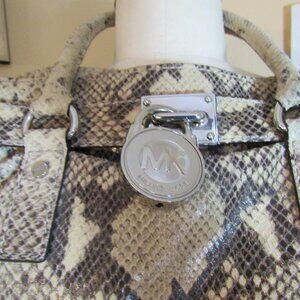 Michael Kors Gray Snakeskin Silver Hardware Large Hamilton Bag