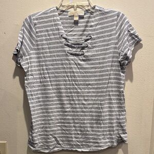 Michael Kors Gray Striped Lace-Up Tee