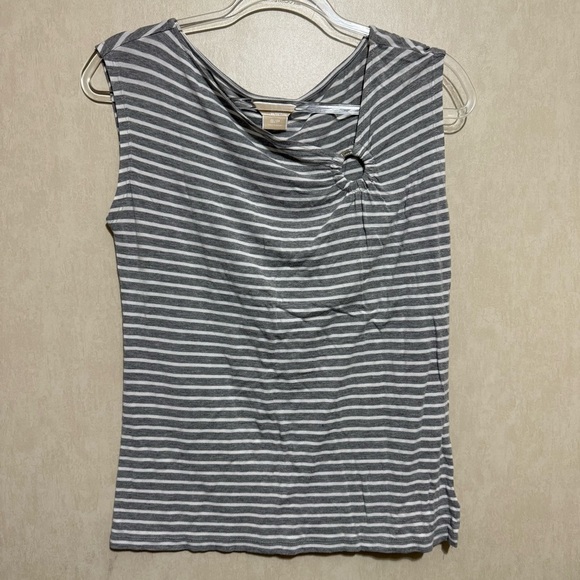 Michael Kors Womens Small Gray White Striped Keyhole Tank Top in excellent used condition. No stains, tears or rips.