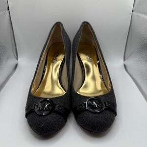 Keywords: Michael Kors heels, gray wool pumps, logo detail heels, size 7M, women's dress shoes, classic heels, designer pumps, MK logo shoes, formal footwear, business casual heels, wool heels, leather sole, comfortable heels, stylish pumps, gray heels