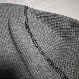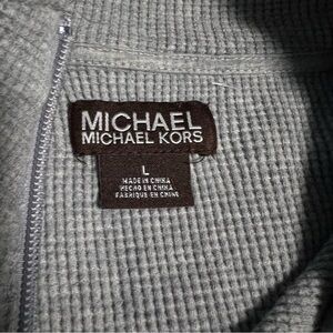 Stylish gray zip-up sweater with a high collar. Features two front pockets and ribbed cuffs.