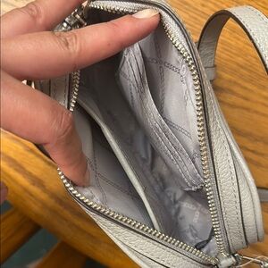 This Michael Kors crossbody bag in a sophisticated gray hue is designed for both style and functionality. Its compact size and adjustable strap make it an ideal choice for carrying your essentials with ease. The sleek design ensures it complements any outfit effortlessly.