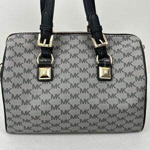 Michael Kors Grayson Large Satchel MK Signature Gray Black with Gold Hardware