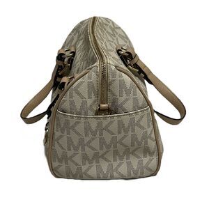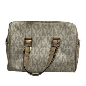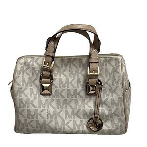 Michael Kors Grayson Medium Empire Logo Satchel Handbag Designer Neutral Casual
