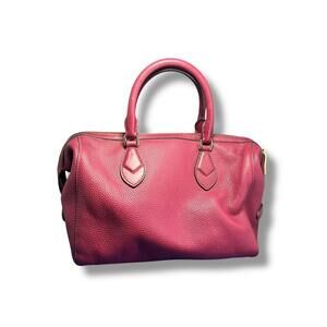 Elevate your style with this elegant Michael Kors Grayson satchel in a rich mulberry (dark berry red) color. Crafted from luxurious pebbled leather, this structured handbag features gold-tone hardware, dual top handles, and a signature lock charm for a timeless, sophisticated look.