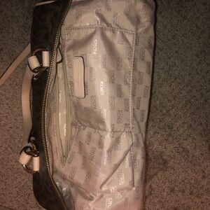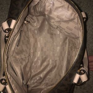 This is a Michael Kors Grayson satchel in brown signature coated canvas and leather with gold-tone hardware. Very new, used only twice. Just to big for me. Open to talking about price.