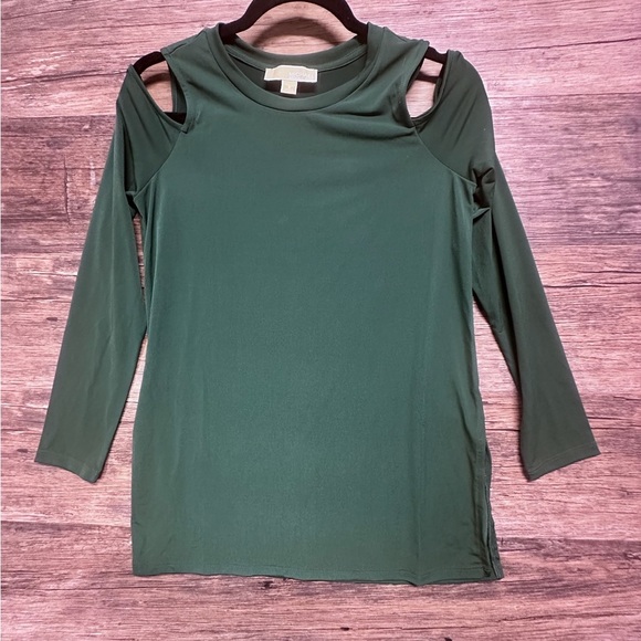 Michael Kors Green 3/4 Sleeve Crew Neck Blouse with Cut Out
