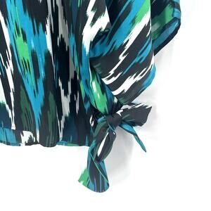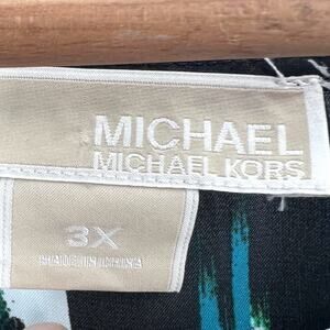 Michael Kors Green Black Abstract 3/4 Sleeve Silky Tie Waist Top Womens 3X